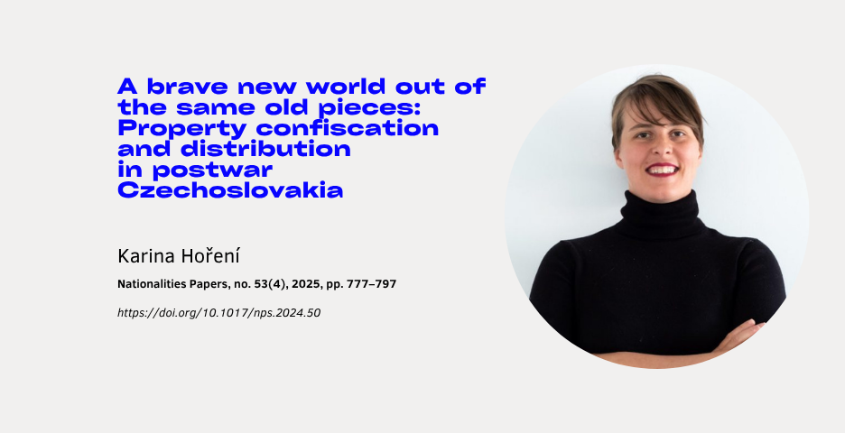 In the latest issue of the Nationalities Papers you can find an article written by Karina Hoření titled “A Brave New World Out of the Same Old Pieces: Property Confiscation and Distribution in Postwar Czechoslovakia”.